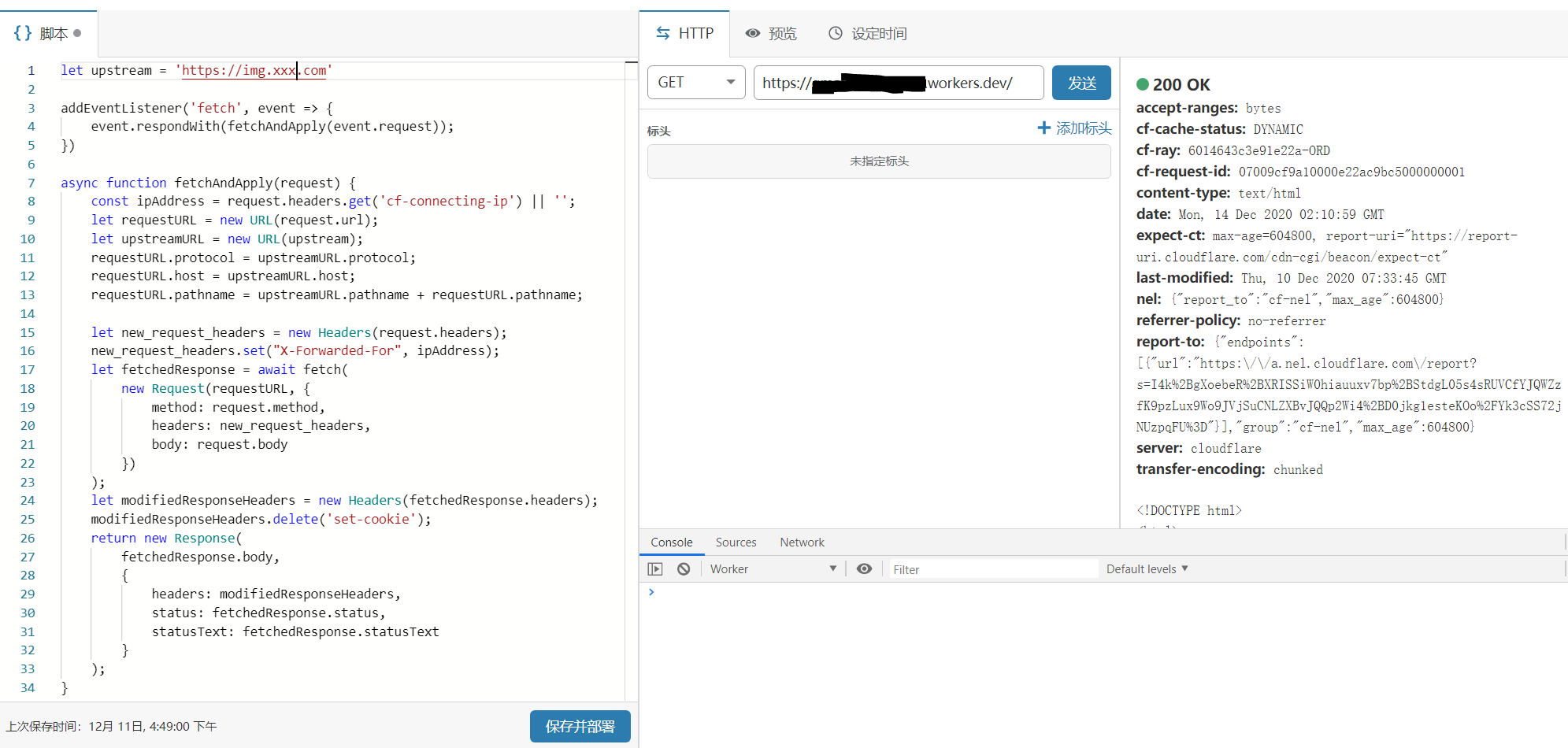 js脚本如下(需要设置X-Forwarded-For头,不然上线的ip是worker的ipv6地址)