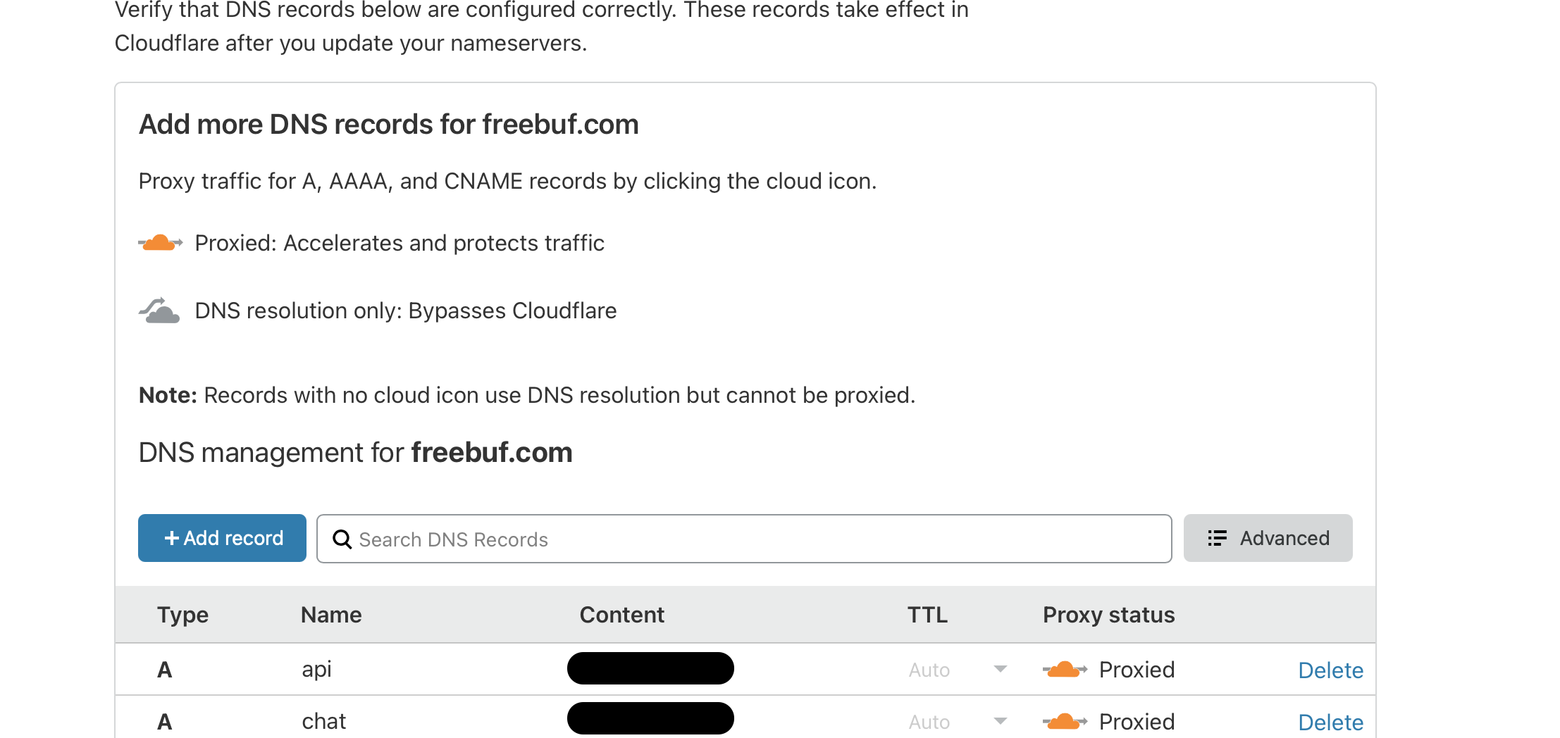 选择免费版本,设置要加速的子域名,并在你的域名服务商处修改域名解析dns为cloudflare的dns。