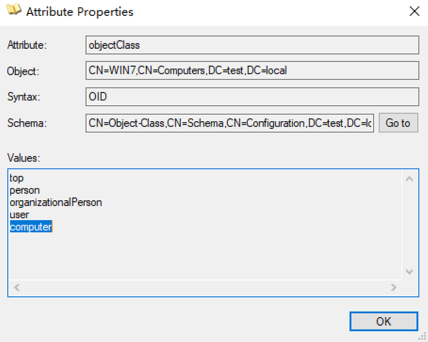 以WIN7这台机子为例,发现它是computer类的实例。而computer类的user类的子类。而域用户是user类的实例。而类是属性的集合,子类继承了父类的所有属性,因此域用户该有的属性,计算用户都有。甚至可以说,机器用户就是一种域用户。