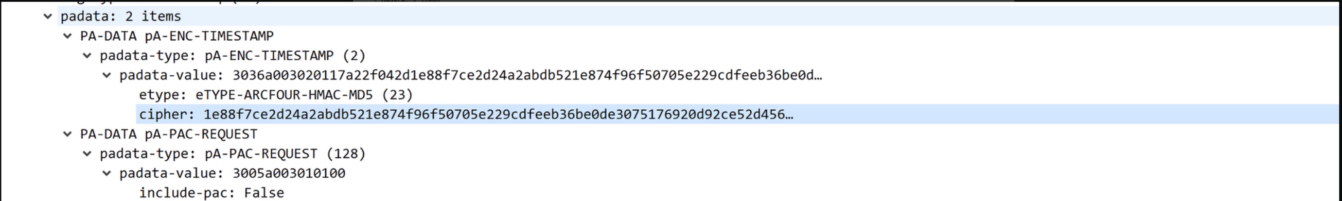1 2 3 4 5 6 7 8 9PA-DATA PA-ENC-TIMESTAMP 用户HASH加密后的时间戳 padata-type: padata类型 padata-vaule: padata的值 etype: 加密类型 cipher: 加密后的值 PA-DATA PA-PAC-REQUEST:PAC扩展 padata-type: padata类型 padata-vaule: padata的值 include-pac: 是否包含PAC,如果包含那么在响应包中就会返回PAC -