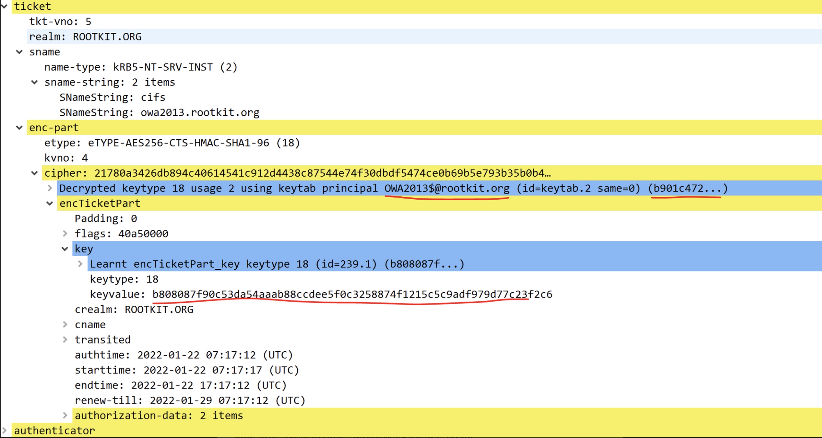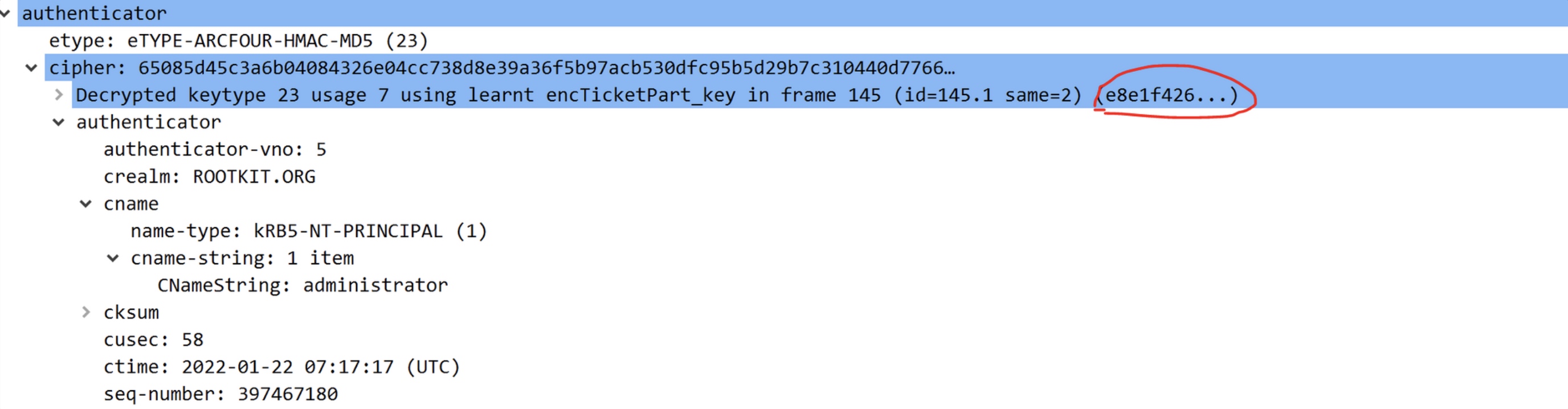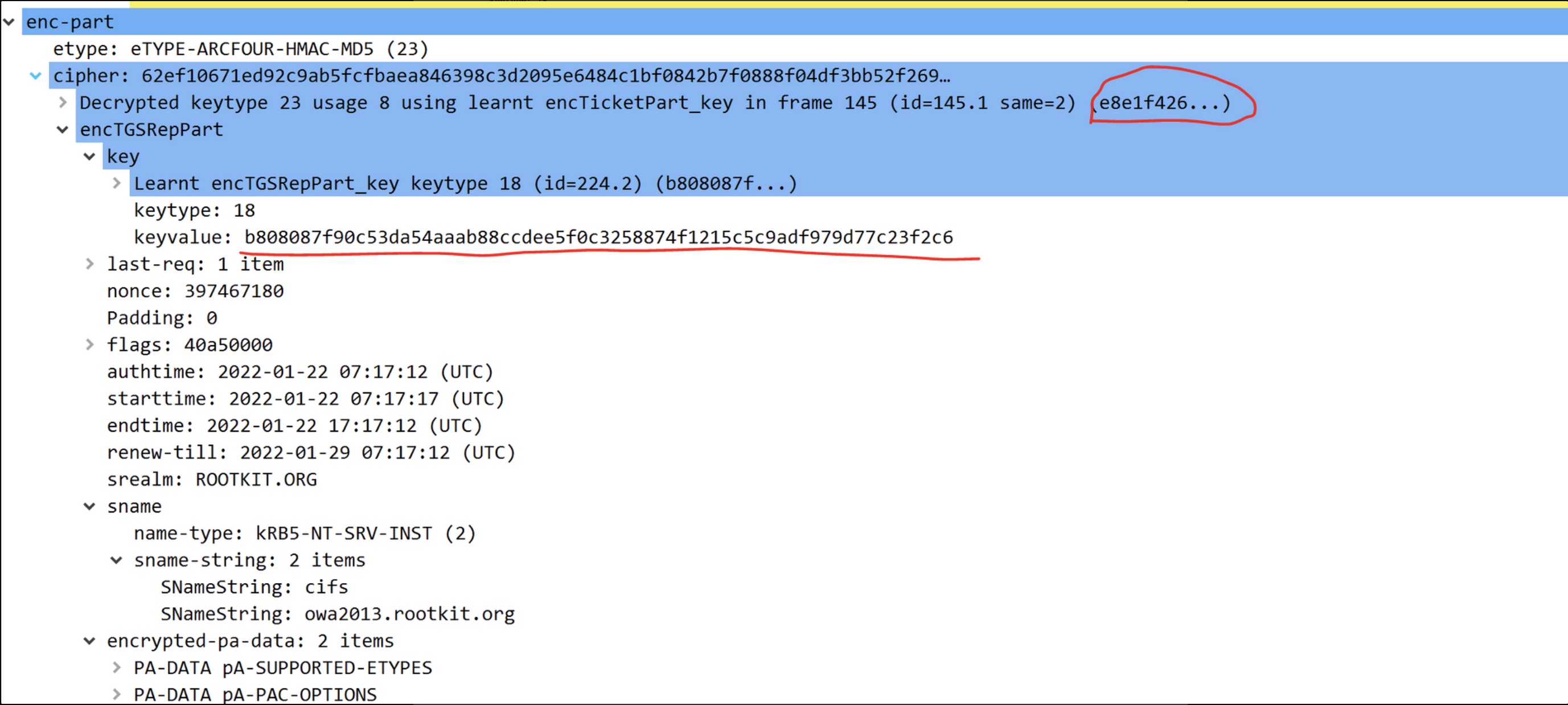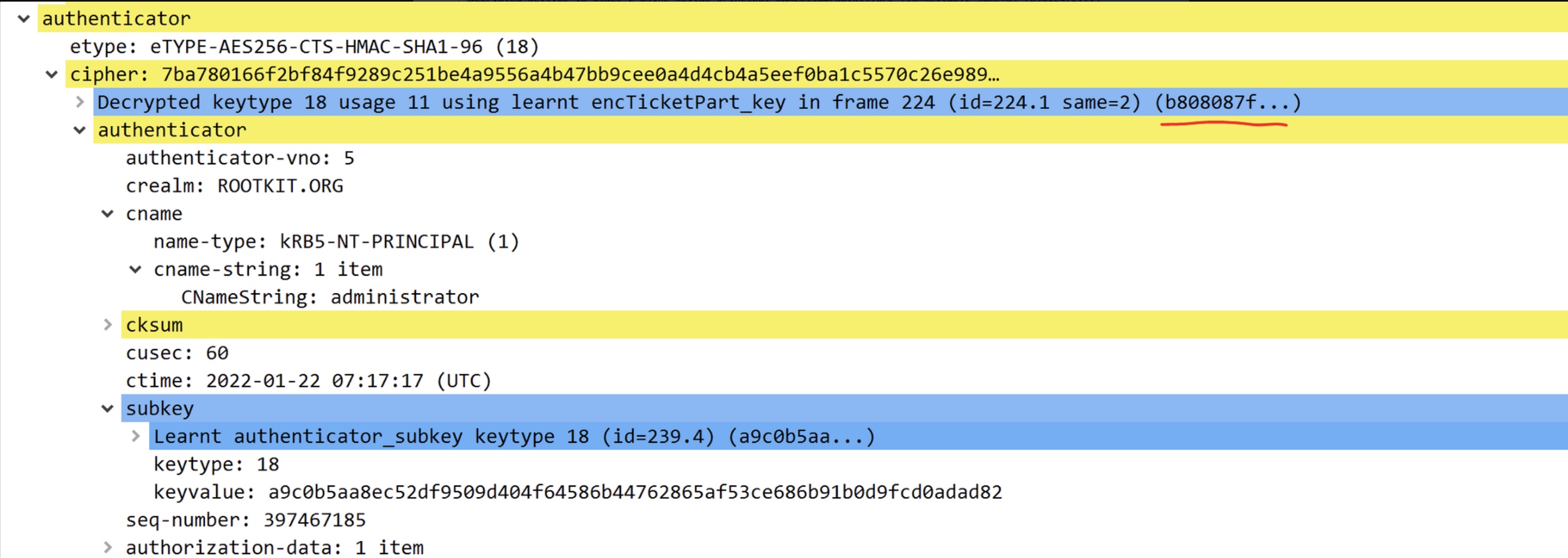 如下是enc-part 解密后的字段。可以看到依旧是用
