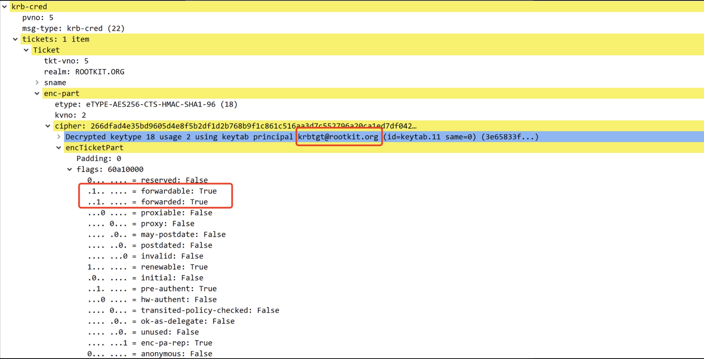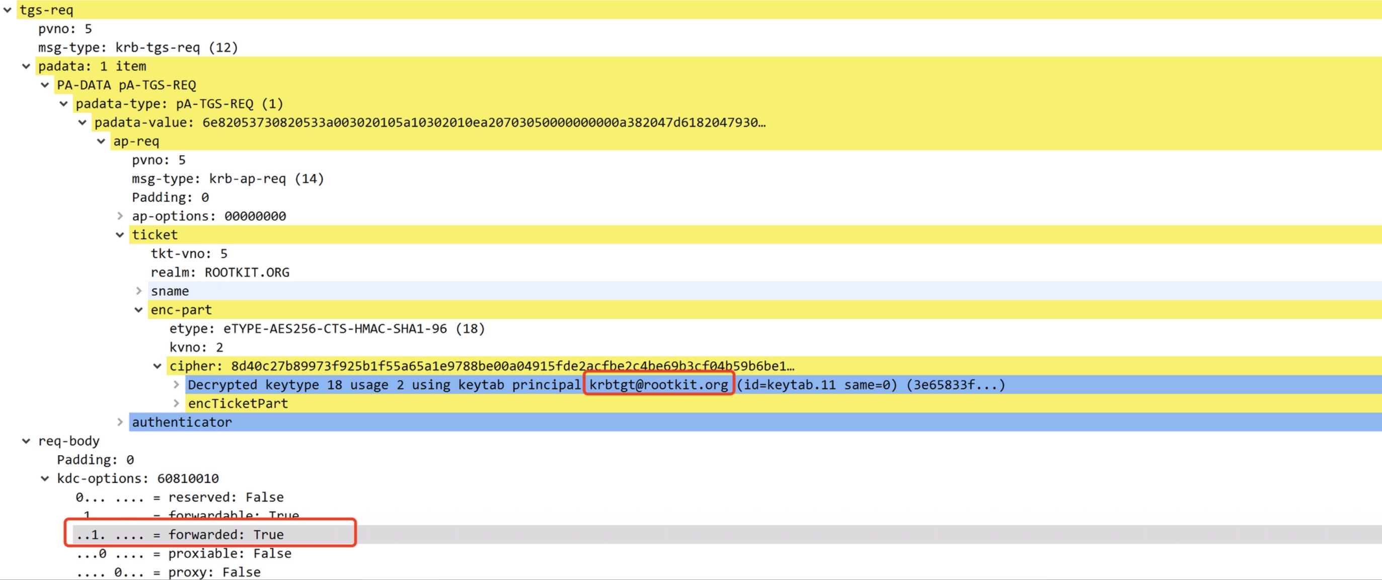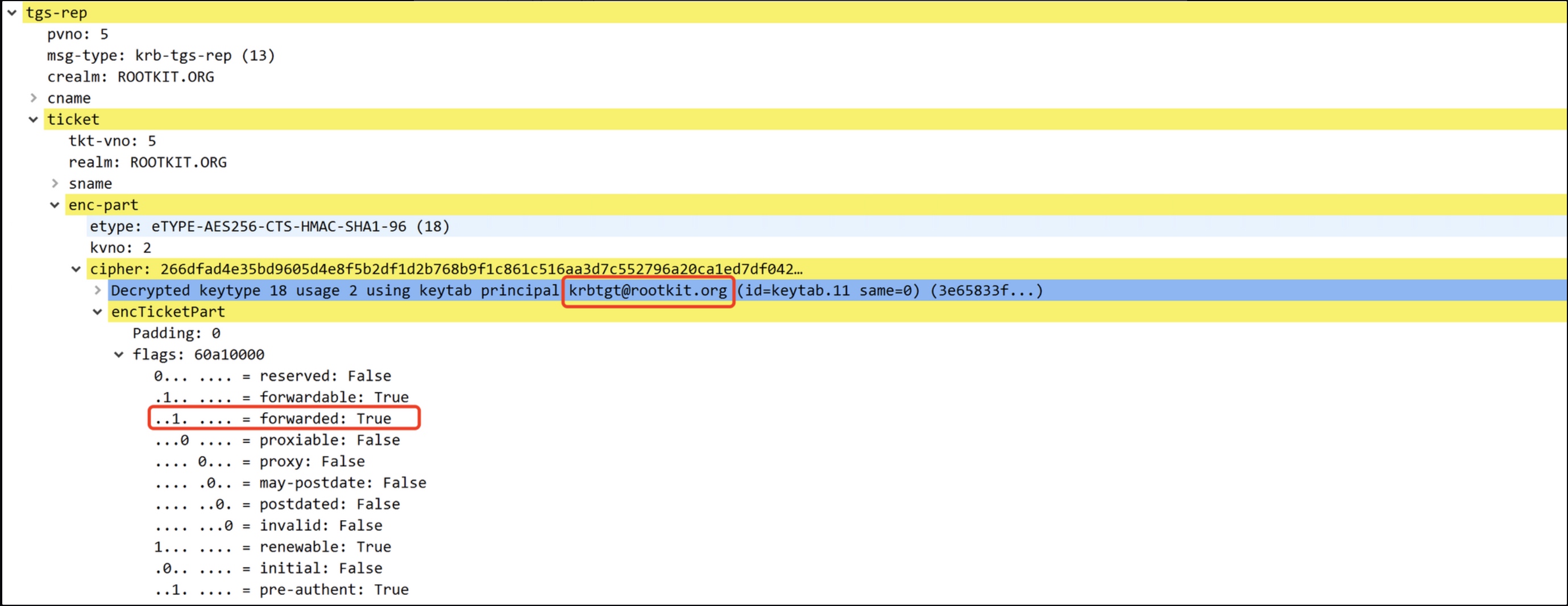 除此之外,在enc-part 部分还有forwarded TGT 的一些基本信息。