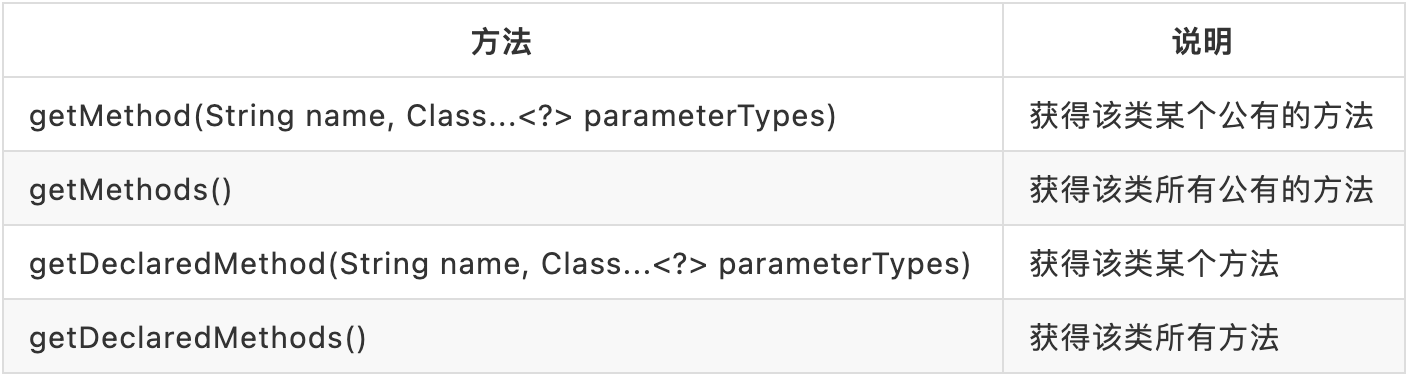 2. getDeclaredMethod能获取到当前类的所有成员方法 (不包含父类)。