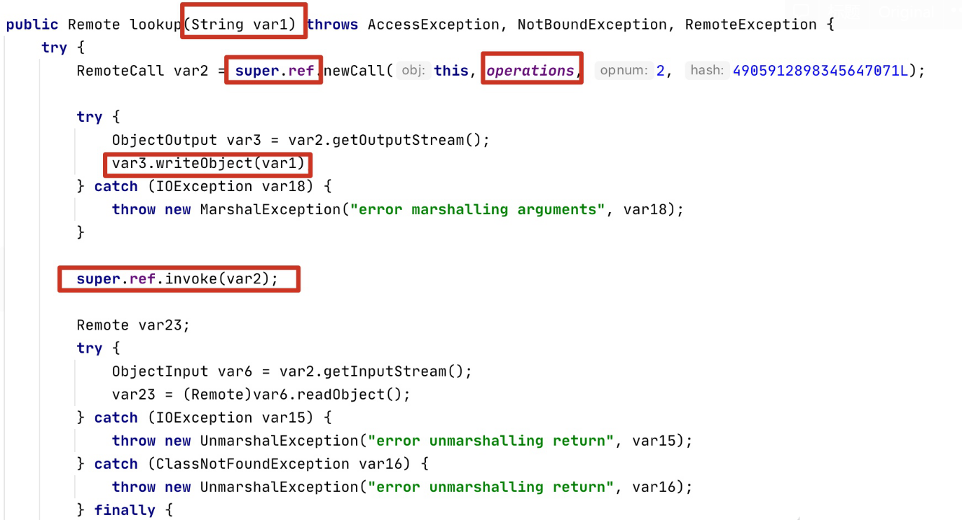 lookup和unbind只接收一个String类型的参数,不能直接传递一个对象反序列化。而注册中心在处理lookup请求时,是直接进行反序列化再进行类型转换。
