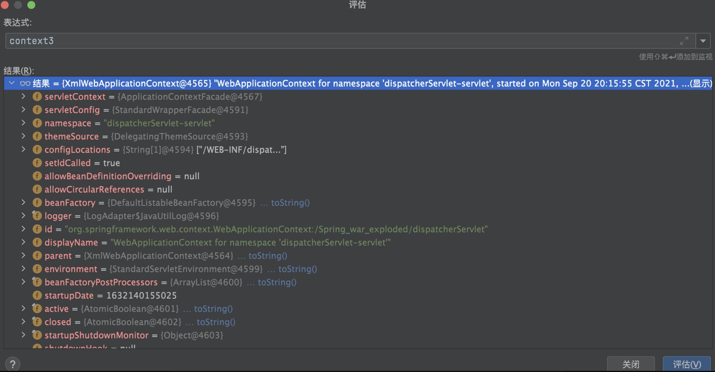 1 2 3 4 5 6//反射 org.springframework.context.support.LiveBeansView 类 applicationContexts 属性 java.lang.reflect.Field filed = Class.forName("org.springframework.context.support.LiveBeansView").getDeclaredField("applicationContexts"); //属性被 private 修饰,所以setAccessible true filed.setAccessible(true); //获取一个 ApplicationContext 实例 org.springframework.web.context.WebApplicationContext context =(org.springframework.web.context.WebApplicationContext) ((java.util.LinkedHashSet)filed.get(null)).iterator().next();因为 org.springframework.context.support.LiveBeansView 类在 spring-context 3.2.x 版本(现在最新版本是 5.3.x)才加入其中,所以比较低版本的 spring 无法通过此方法获得 ApplicationContext 的实例。