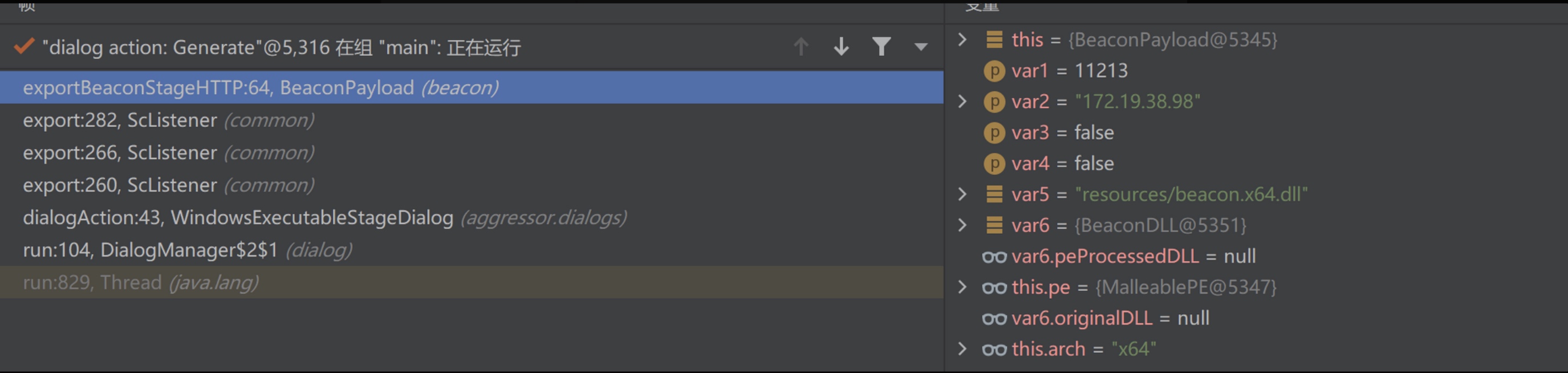 首先定位关键点BeaconPayload的exportBeaconStageHTTP 方法,从dialogAction() 到该函数的调用链如下(略过了一些传参判断):