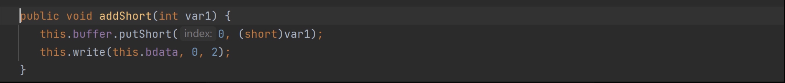 addShort、addInt、addData、addString方法是如何实现的。下图是这些方法的定义: