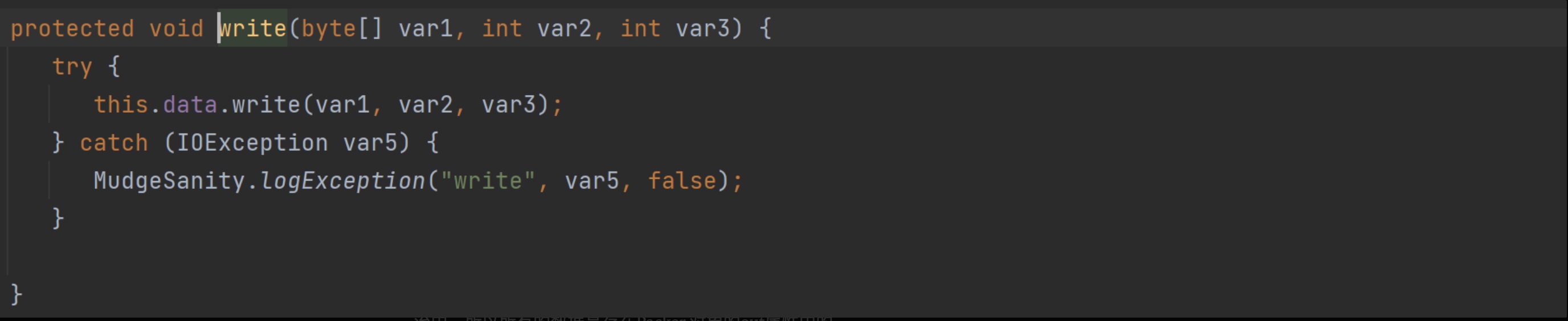 this.data.write(var1, var2, var3);就是将var1数组从var2偏移开始把var3长度的数据写到输出流中。所以所有的数据是存在Packer 对象的out属性中的。 -