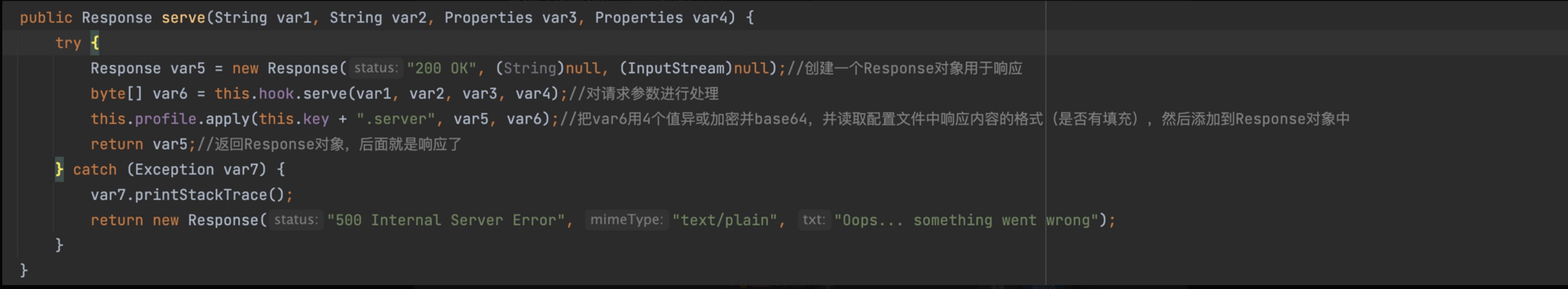 serve()方法。(后面都会把关键内容写在注释里,节省篇幅)