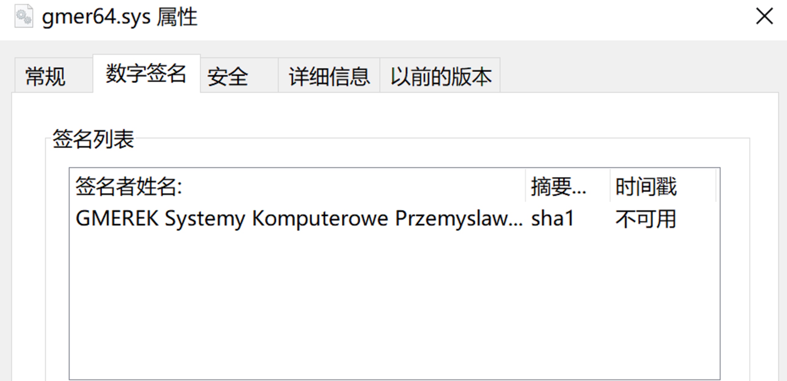 Tips: gmer64.sys 驱动在高版本Windows 上加载会提示证书被吊销,同时也被多个杀软标记为恶意驱动。所以此样例仅做学习讨论之用。