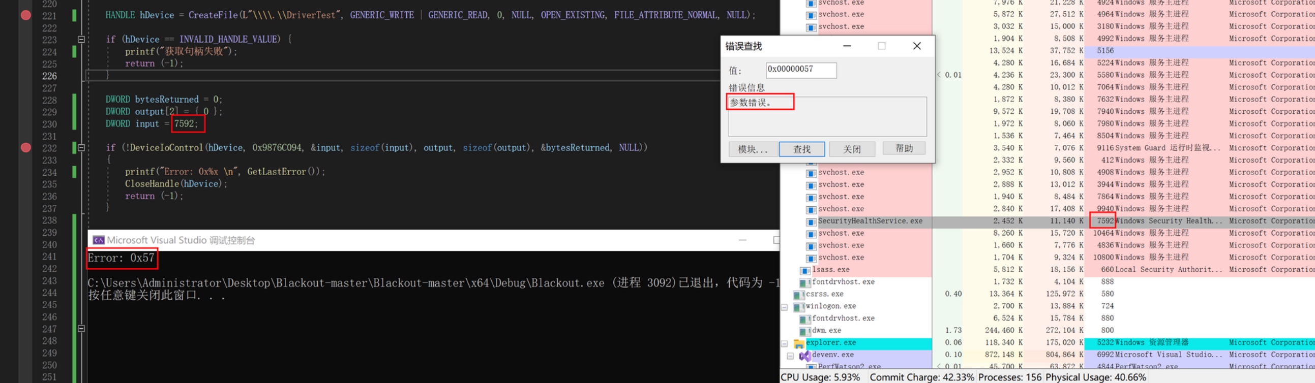 到现在为止,我们知道了通过DeviceIoControl 函数并设置IOCTL为 0x9876C094 ,即可调用驱动去kill 指定进程。但是目前还需要确定这个进程的PID 是什么格式传进去的,以及还有没有什么其他校验。