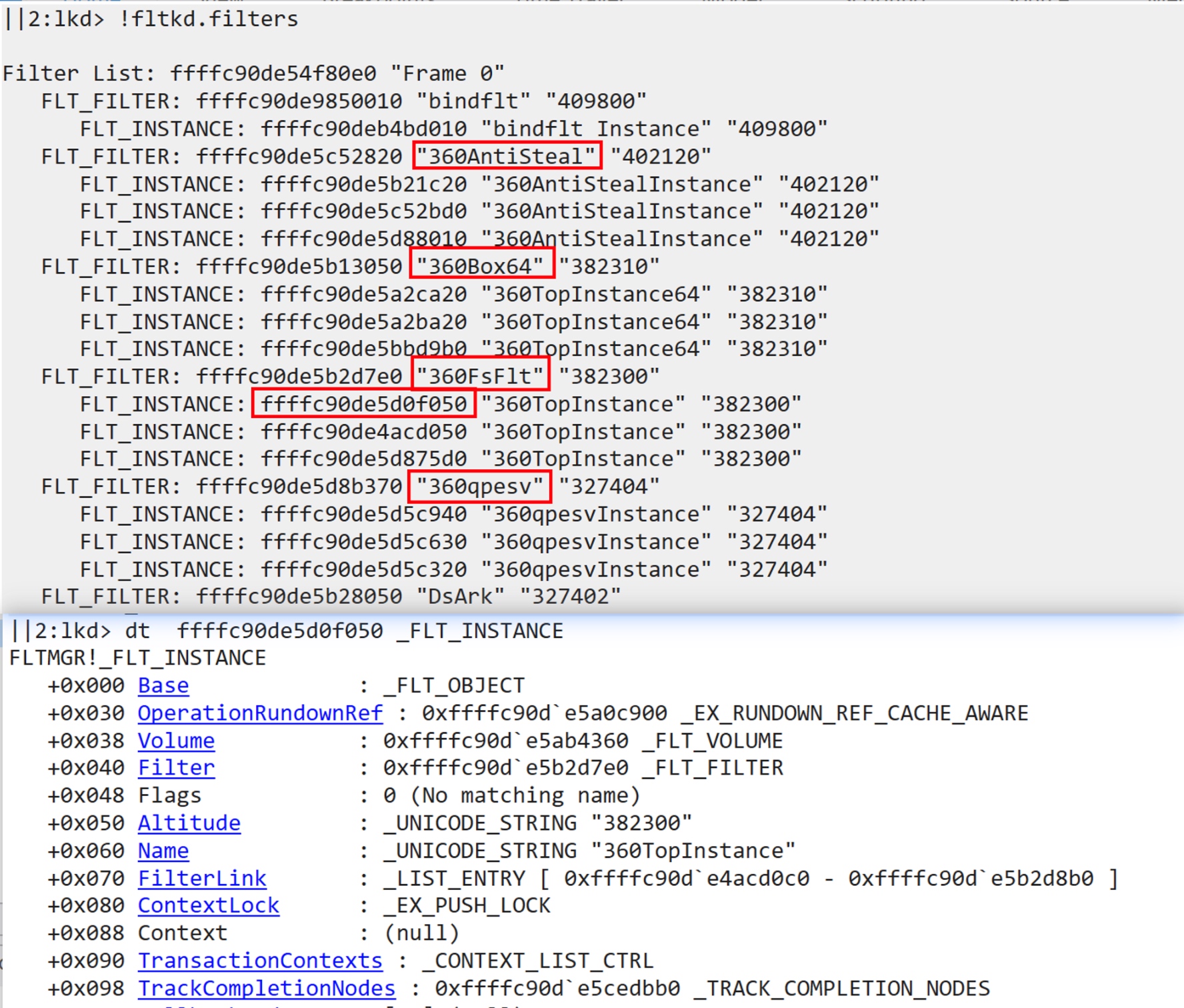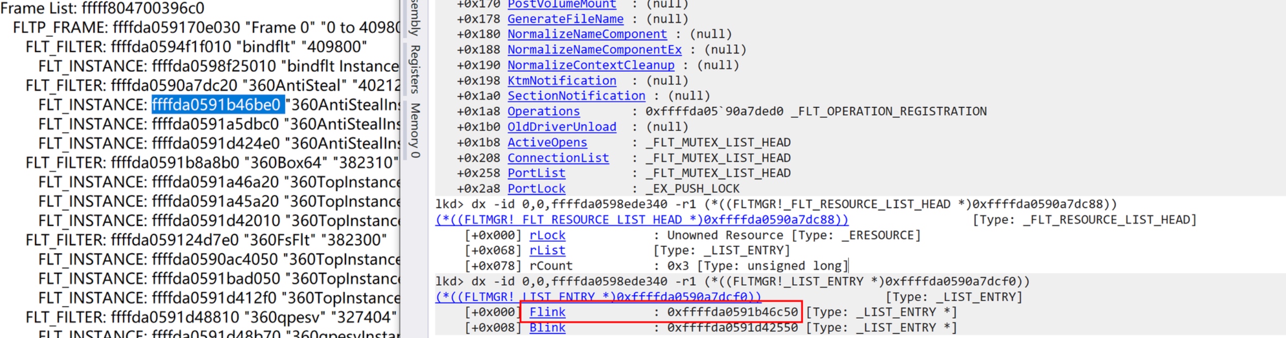 其实上面分析还没完,还有个问题是该怎么通过_FLT_FILTER 定位_FLT_INSTANCE 结构呢?