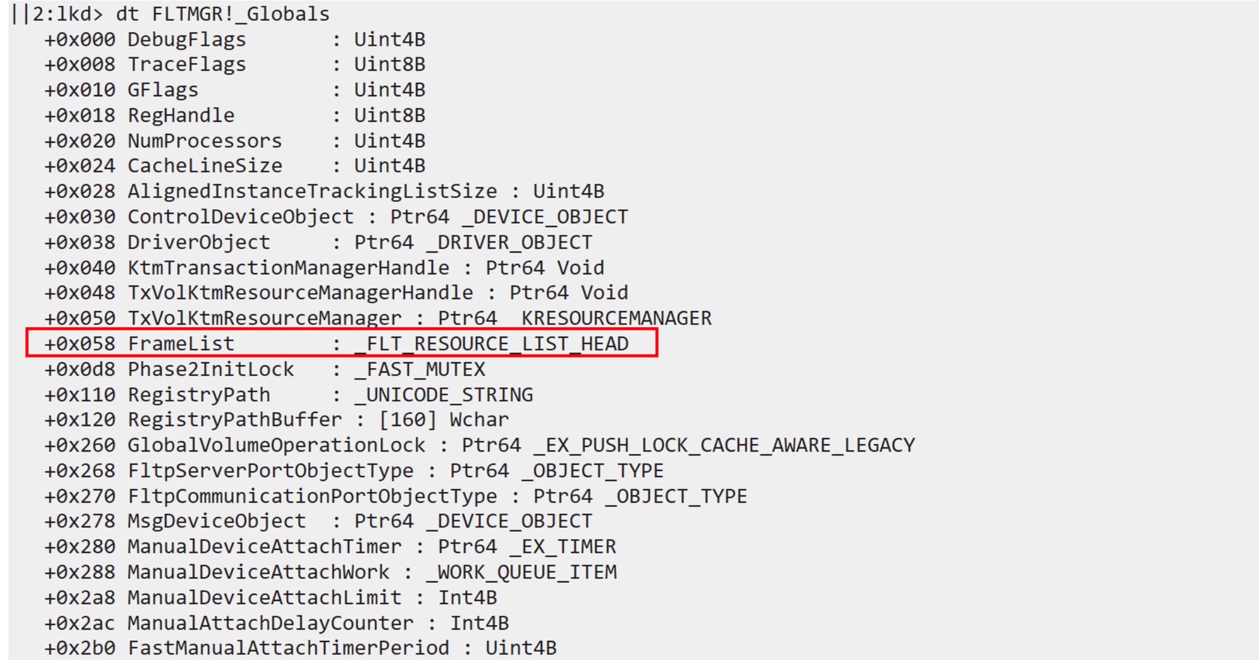 发现有一个名为FrameList 的_FLT_RESOURCE_LIST_HEAD 结构,看看此结构。
